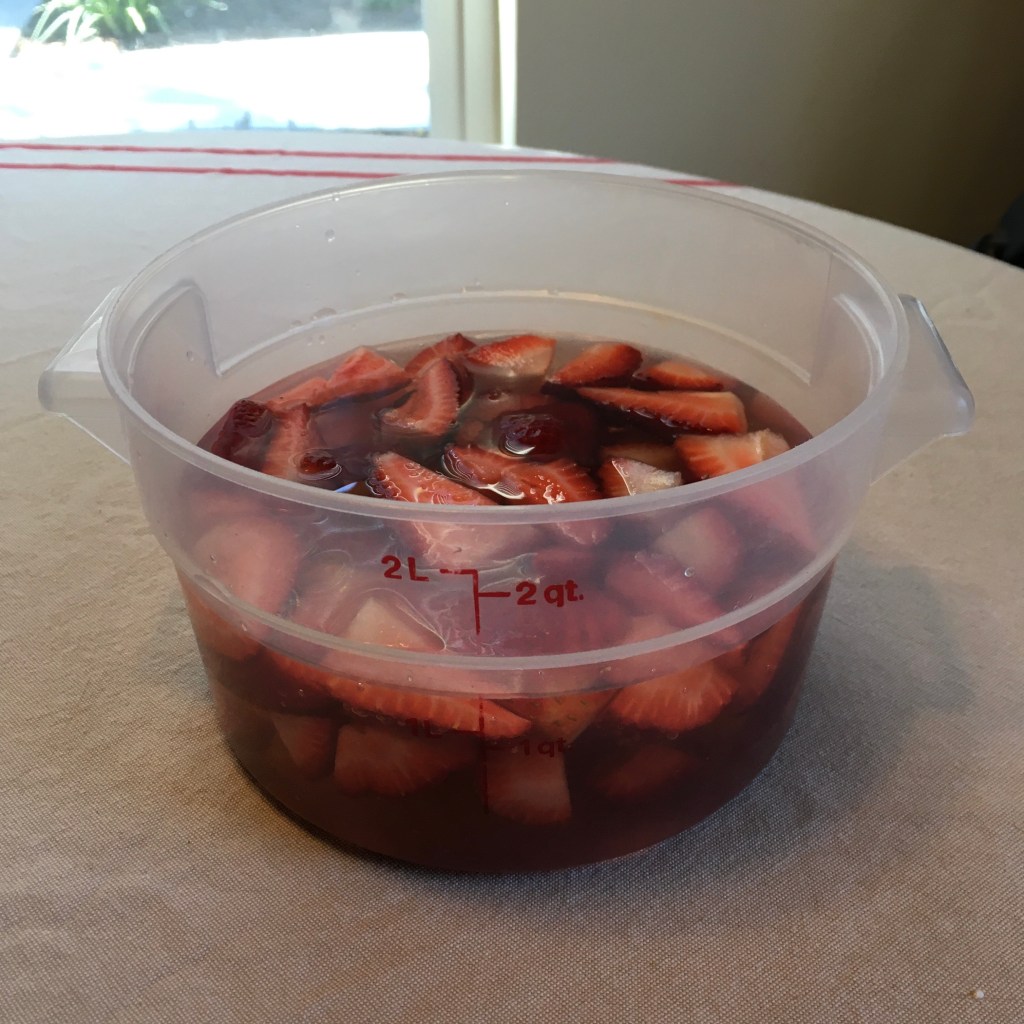 - Wash and cut up another pound of strawberries and let them sit in the vinegar for another 3 days.