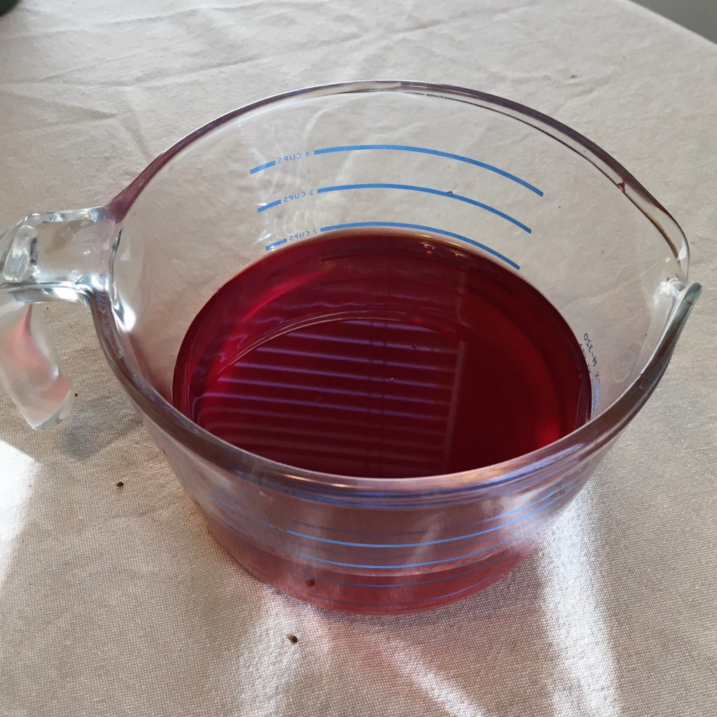 - Fill the glass 2/3 full of cold water, then fill the remainder with the strawberry vinegar and stir.