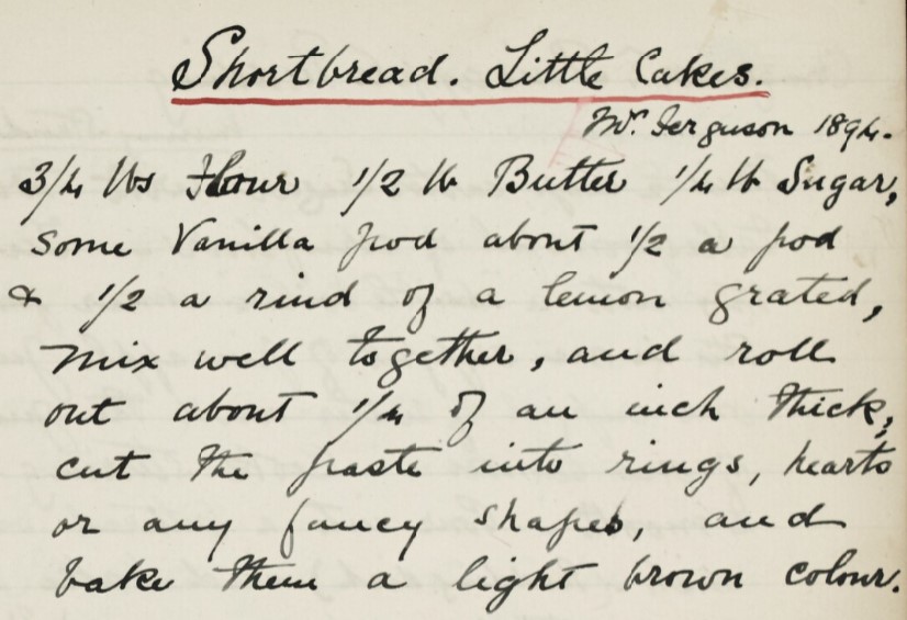 This classic Scottish shortbread recipe comes from the handwritten recipe book of Mary Malcolm Palmer-Douglas in the National Library of Scotland’s collection.