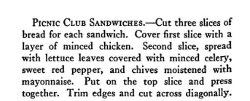 Picnic Club Sandwiches from The Motorist’s Luncheon Book, 1923: