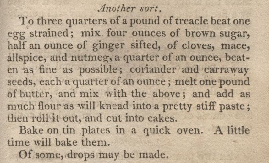 I’m always fascinated by recipes that pop up over and over again throughout different cookbooks. Early cookbook authors copied from one another extensively, frequently reprinting recipes from other cookbooks word-for-word or with only a few minor alterations. The copied recipes are almost never attributed to their original authors, a practice that would be considered plagiarism today but was common at the time. I’ve found this exact gingerbread recipe in three 18th and 19th century cookbooks so far, and wouldn’t be surprised if it turns up in more.
