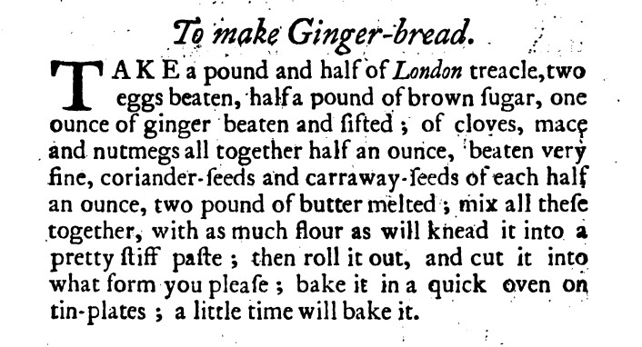 Ginger-bread (1/4 of Eliza Smith’s original recipe):